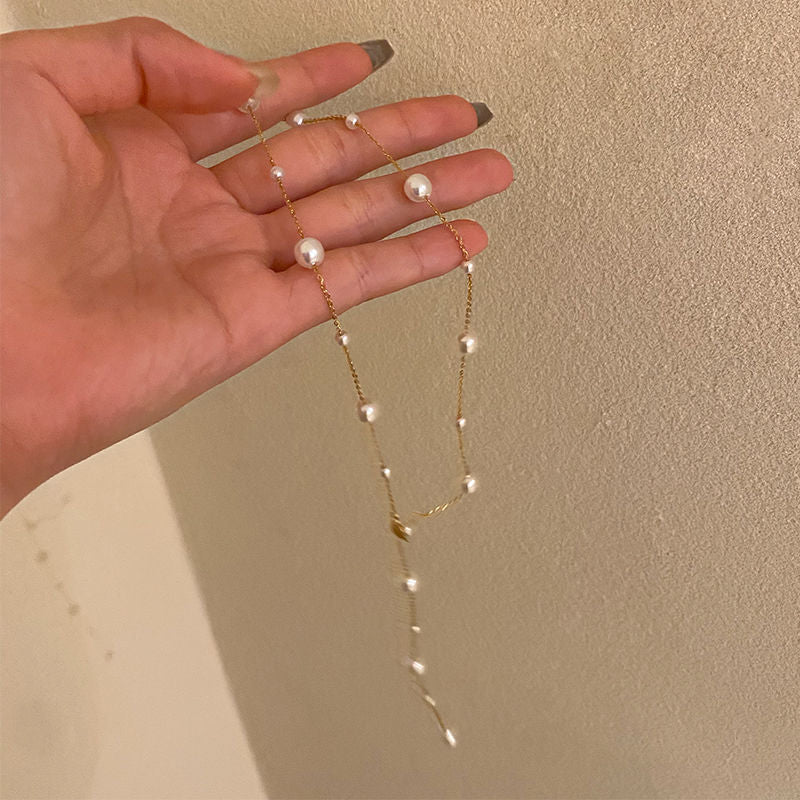 Elegant collarbone chain, small and fresh titanium steel, starry sky, pearl, simple tassel, versatile, personalized necklace for women